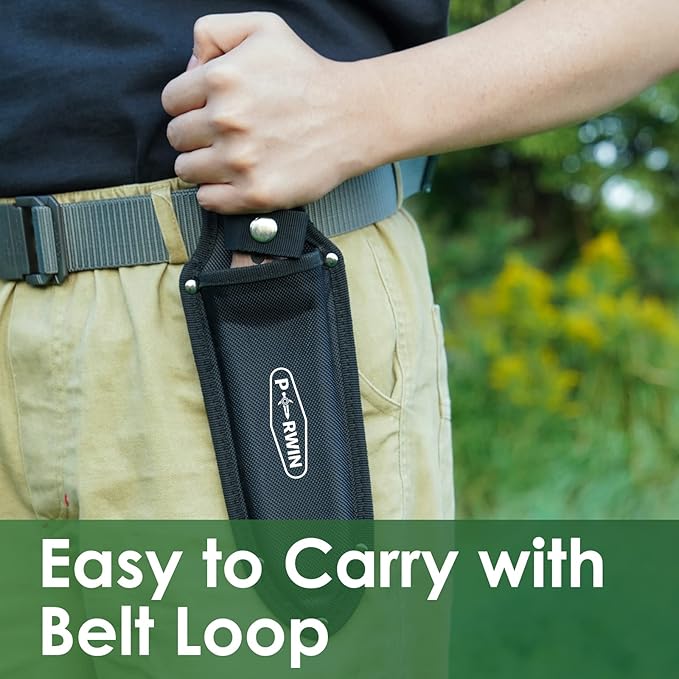 • Protect Sheath: A protective sheath with a belt loop protects the knife and can also be hung on your belt for easy use. The top of the handle has a hanging hole so that you can hang it in your garage or tool room for easy storage.