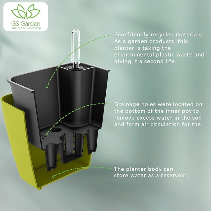 • GS Garden self-watering planters is an ideal plant pot for for All Outdoor/Indoor plants. The special water inlet design can avoid soil collapse and lead to excessive hardening of the flower soil. The root system can fully grow in the soft soil.Ideal for residential and commercial grades