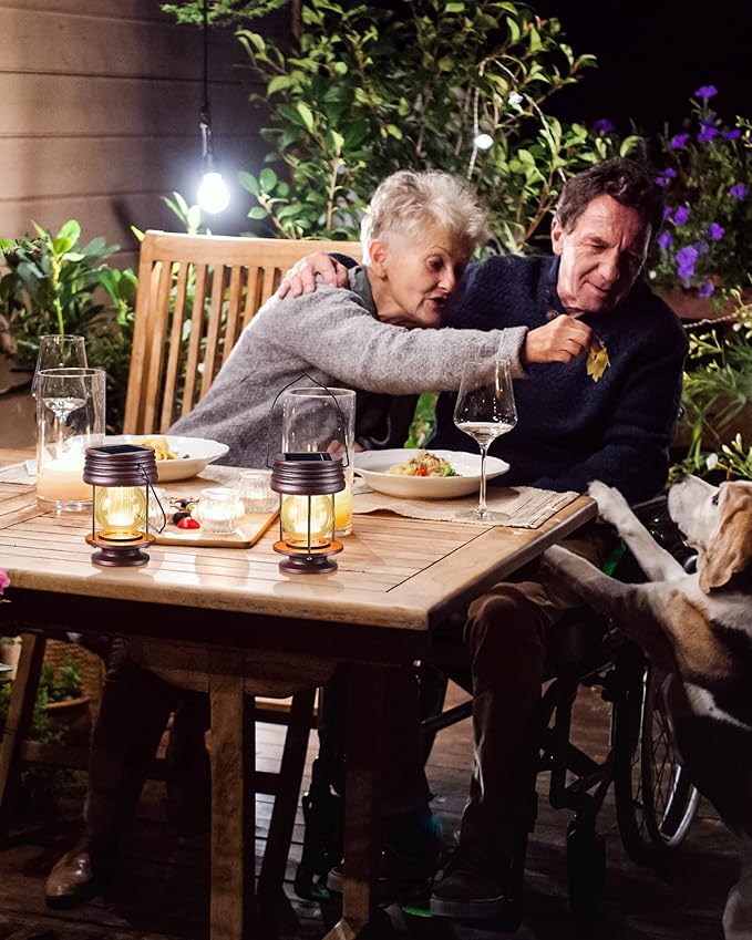 • Two Installation Ways: solar lanterns for patio are equipped with a strong handle, and can be easily hung on a wall or tree, or placed on flat surfaces such as tables, shelves, porches, patios and pergolas, you can charge the solar light outdoors and use it indoors