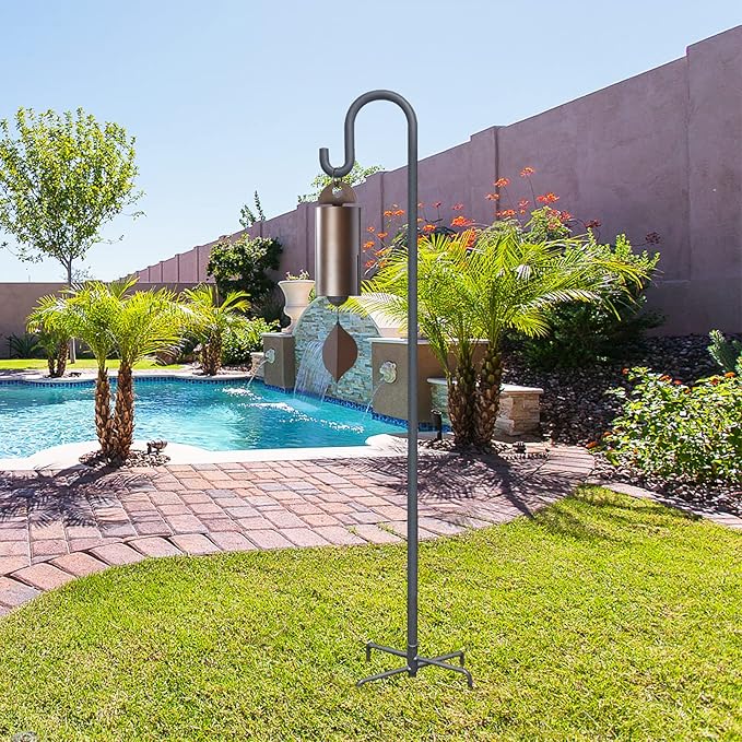 • 【Multipurpose Bird Feeder Hook for Outside】This shepherd hook is perfect for hanging almost anything you want in the garden or patio, such as hummingbird feeders, birdhouses, solar lights, lanterns, wind chimes, small flower baskets, succulents, wedding decorations.