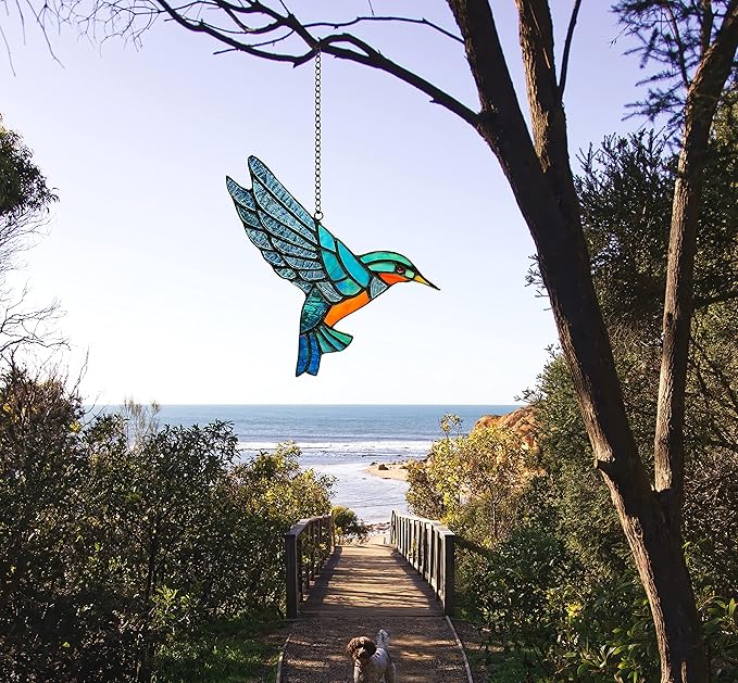 2 Pack Hummingbird Stained Glass Birds Window Hangings, Stained Glass Decorations,Bird Suncatcher for Window Decor Hummingbird Gifts for Mom,Bird Lovers