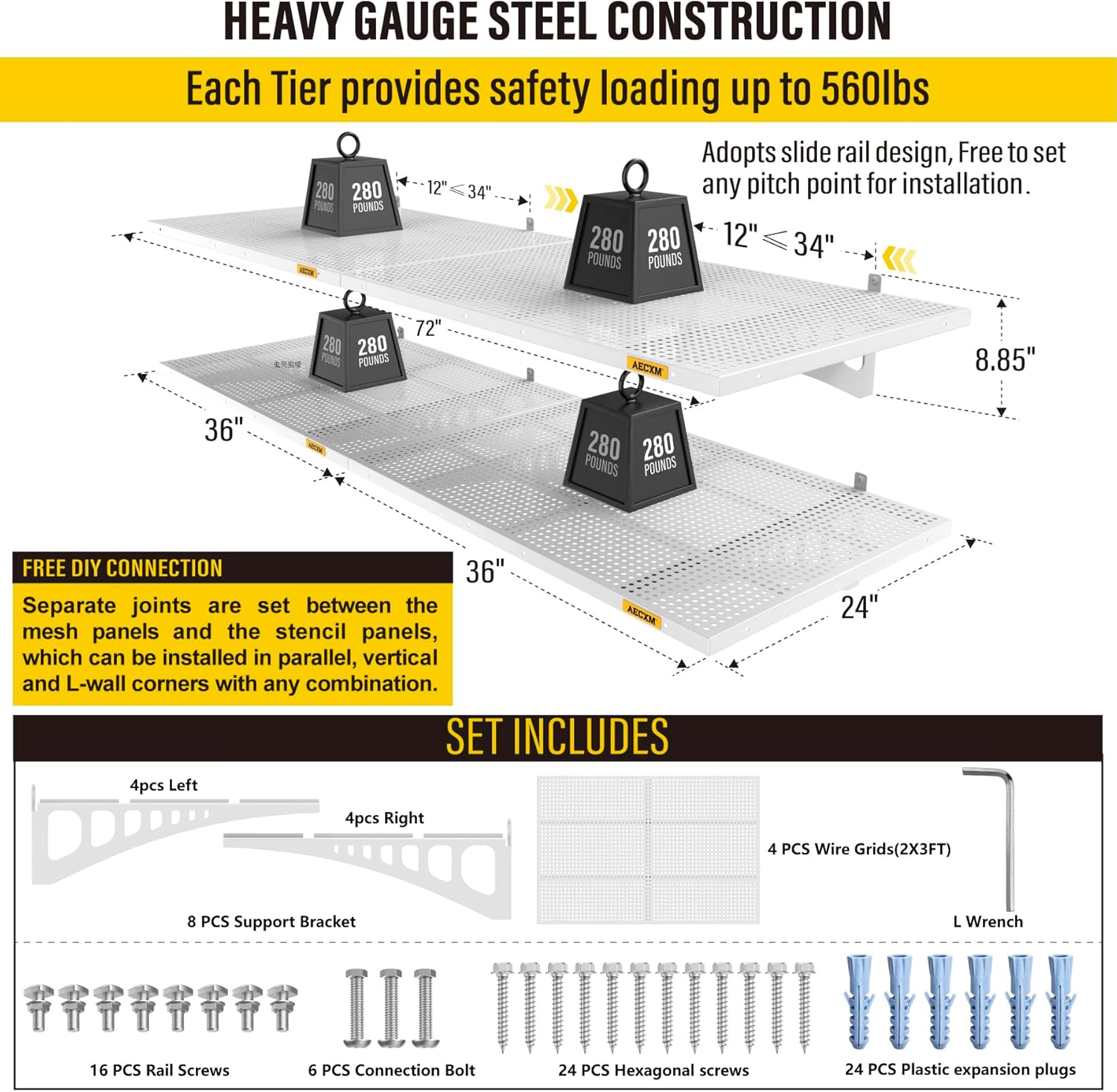• Premium Craftsmanship: This garage wall shelving is crafted from a single steel sheet, precision-stamped and folded for strength. Unique high-density hole design enhances functionality while delivering a sleek, modern aesthetic