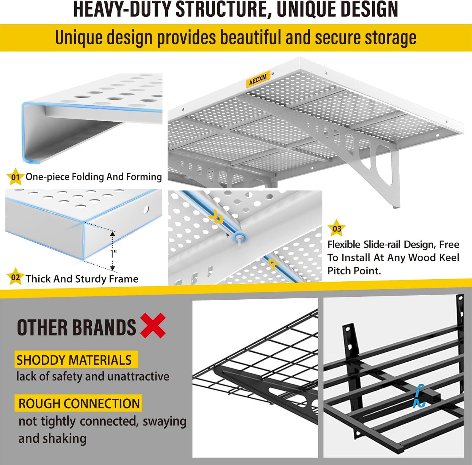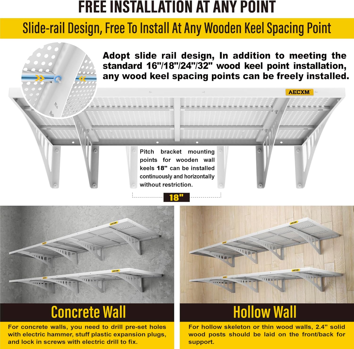 • Innovative Design: Unlike fixed wood stud spacing systems, Aecxm garage wall shelving feature an exclusive sliding rail screw design, allowing flexible installation on any wood stud spacing within the panel's length. Adjust freely and hassle-free