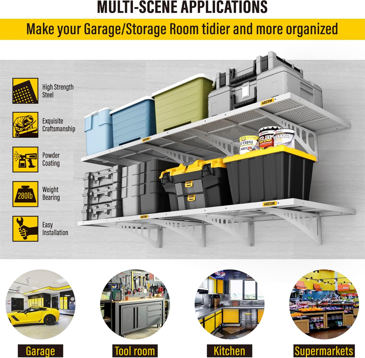 • Easy Installation: Includes high-quality screws and a detailed instruction manual, allowing one person to effortlessly complete the setup. This 2x3ft garage shelf wall mount offers ample storage space for your garage, kitchen, or pantry, keeping everything organized and within reach