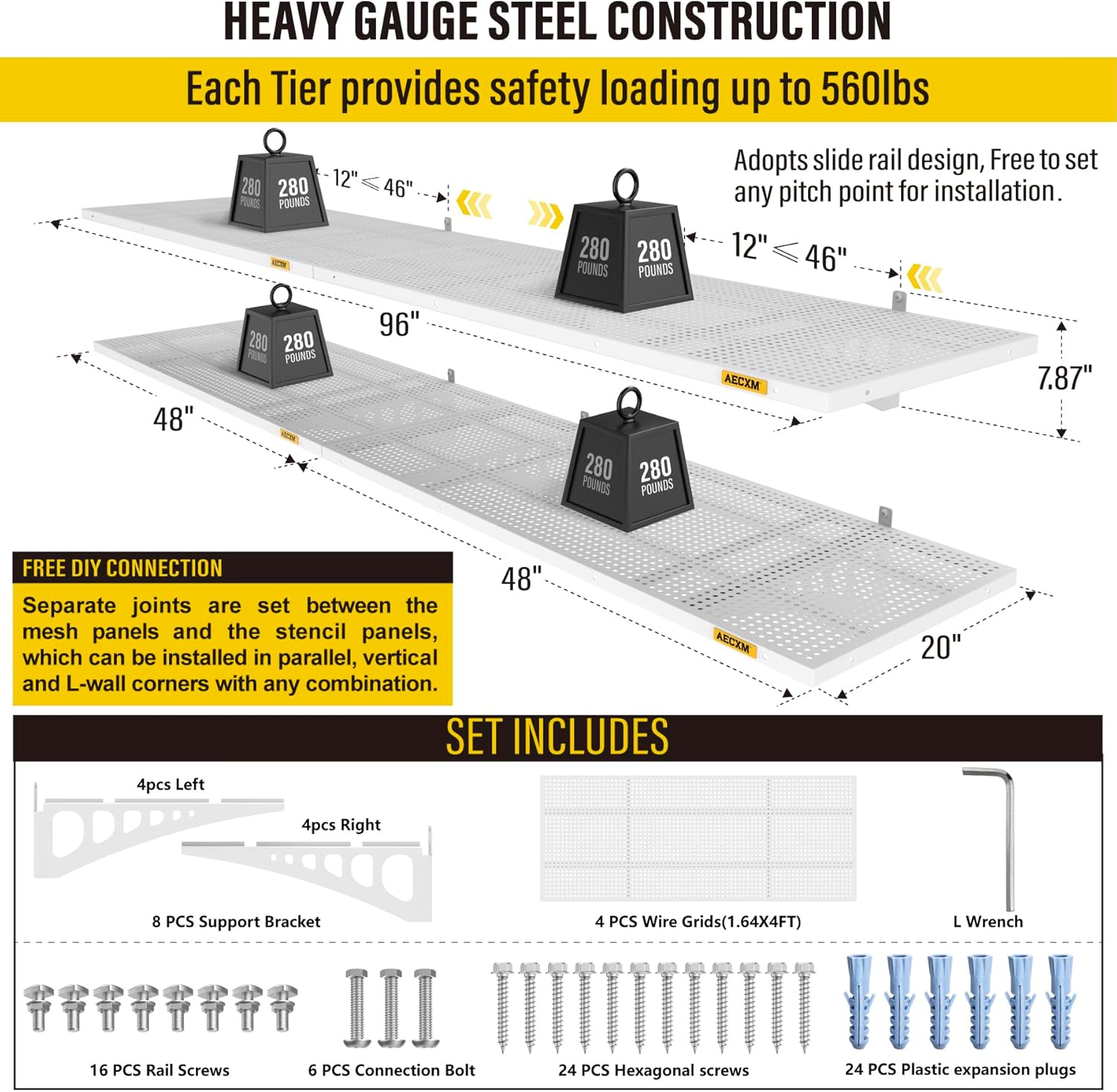 • Premium Craftsmanship: This garage wall shelving is crafted from a single steel sheet, precision-stamped and folded for strength. Unique high-density hole design enhances functionality while delivering a sleek, modern aesthetic