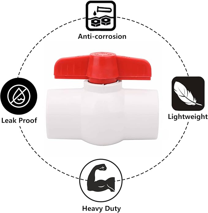 • 【Material】2pcs Heavy Duty 1-1/4 Inch PVC Ball Valve made of high-quality PVC, high-impact strength, resistant to frost and corrosion, long service life.