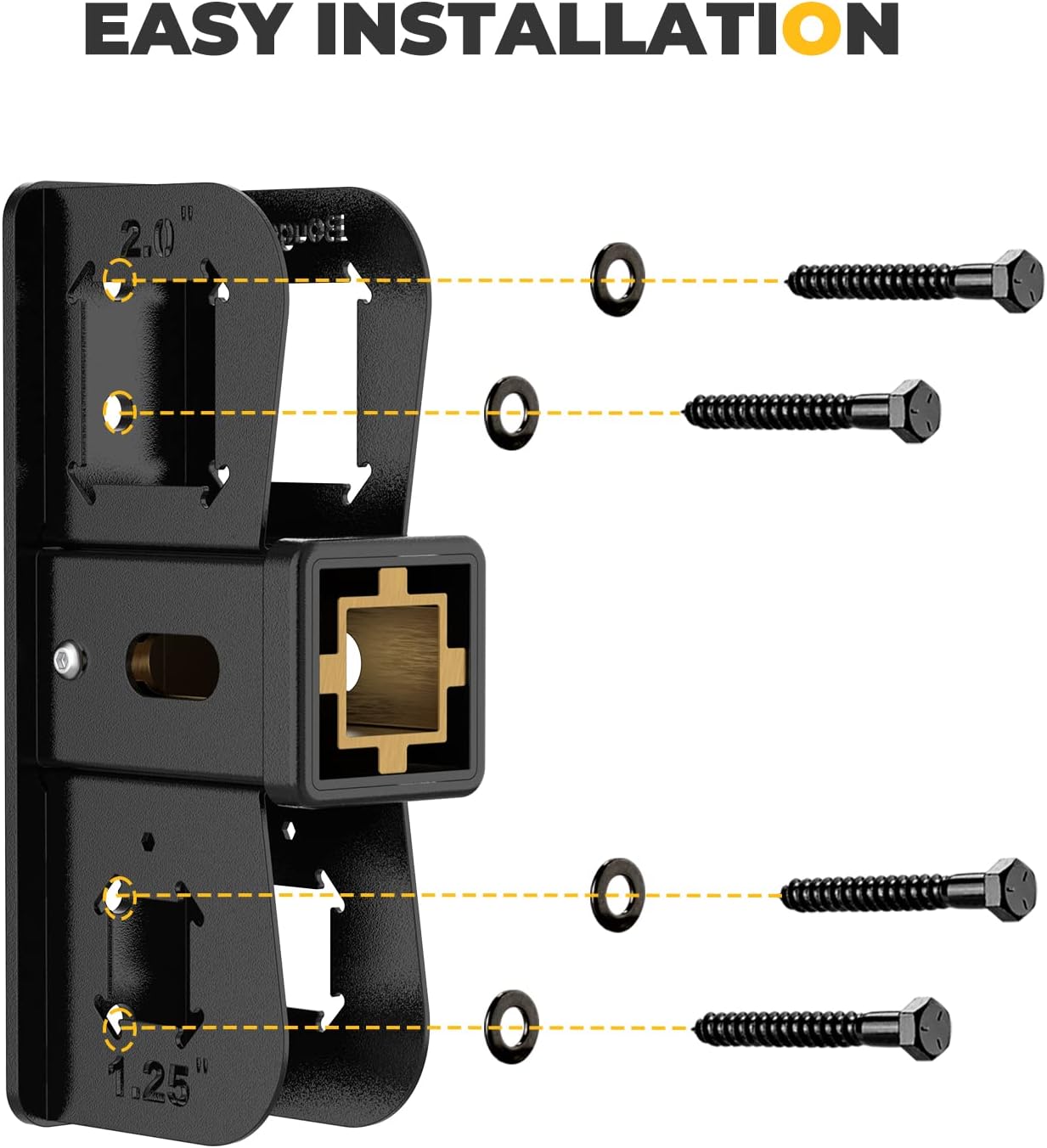• EASY INSTALLATION: BougeRV hitch wall mount only takes you 5 minutes to complete the assembly with 4 screws & washers included. It is suitable for 1.25 "/2" receivers.