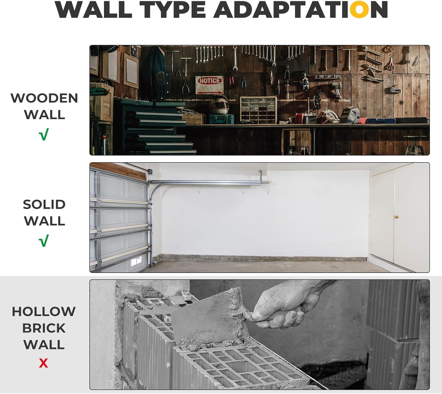 • STRONG STABILITY: The wall mounted is made of high-quality Q235 steel and 6063 aluminum-alloy materials, which are durable and resistant to deformation and corrosion. It can be installed on wood and solid walls. After testing, its continuous bearing capacity can reach up to 300 lbs. (Please note that it is not recommended to install it on a wall built of hollow bricks!)