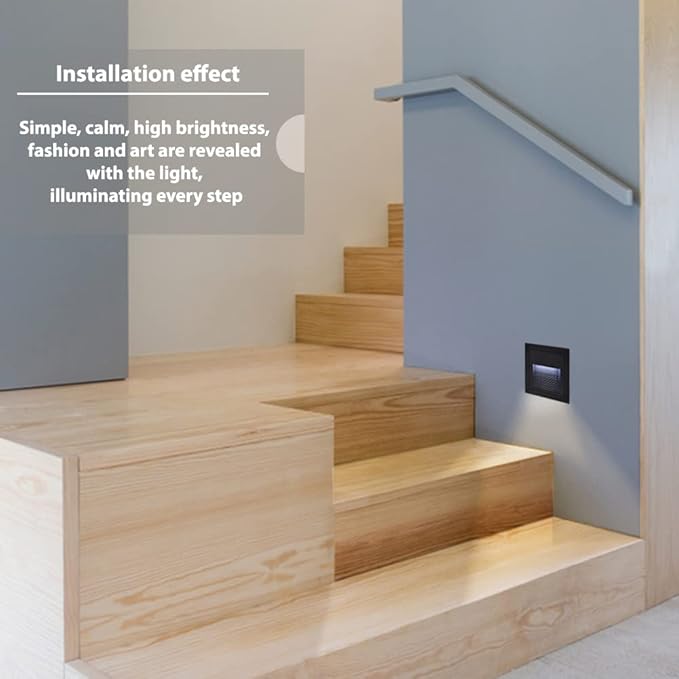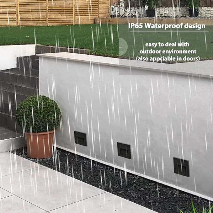 • Good quality: Black shell, cool white 6000K, aluminum corner staircase light step light, IP65 waterproof, suitable for indoor and outdoor. (IP65 can prevent the splashing water, but cannot be installed directly under water)