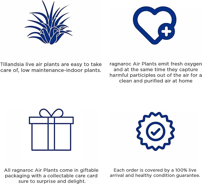 • EASY-CARE PLANTS INDOORS LIVE: Thrives in bright, indirect light. Mist the air plants 2-3 times per week or soak them in water for 20-30 minutes weekly. No soil required, making this variety pack of live house plants perfect for beginners and seasoned plant enthusiasts alike.
