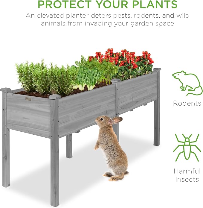 • PROTECT YOUR PLANTS: An elevated bed discourages pets, rodents, and other animals from invading your garden space and ruining your hard work; OVERALL DIMENSIONS: 72"(L) x 23"(W) x 30"(H); WEIGHT CAPACITY: 300 lbs.
