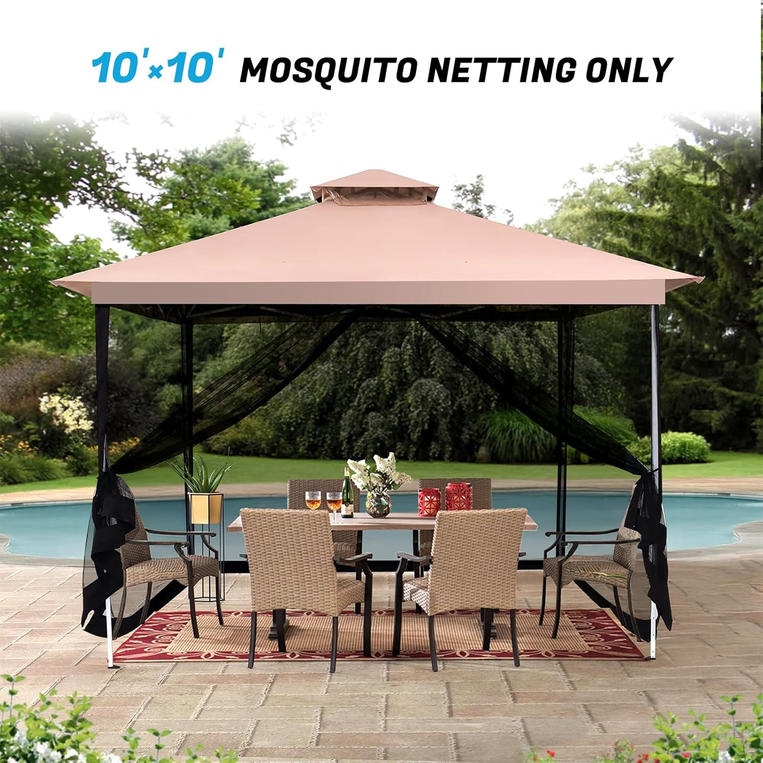 10'x10' Mosquito Netting for Patio with Zipper, Outdoor Replacement Mesh Sidewall Netting for Porch/Patio/Canopy/Gazebo (Mosquito Netting Only, Black)