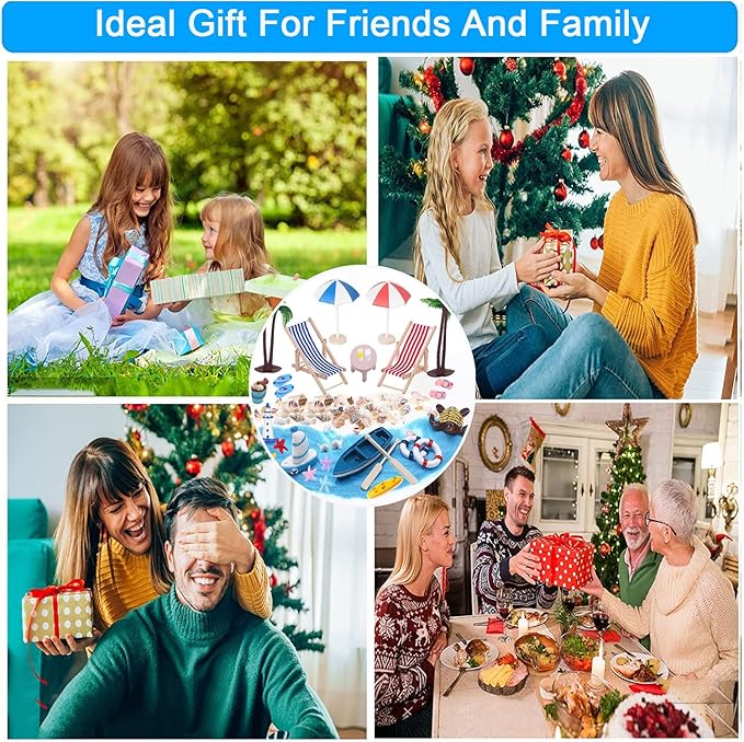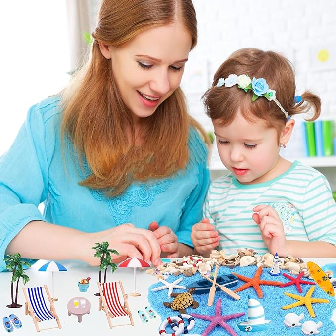 • 【Perfect for DIY Projects】Contains various elements of the beach to help DIY create colorful and interesting coastal scenes. This miniature dollhouse decoration set encourages imagination and offers more possibilities for creativity. Suitable for garden furniture,dollhouse, miniature furniture, sandboxes, fish tanks as a wonderful decoration.
