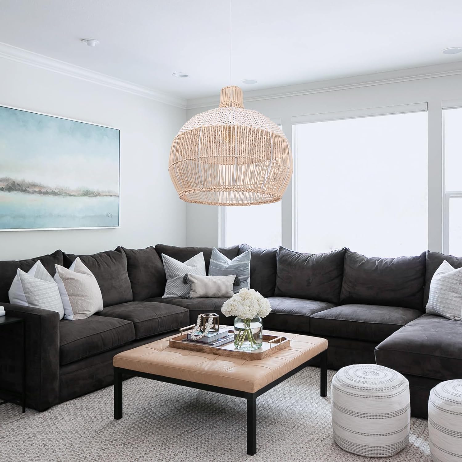 • 【Unique Design】Rustic retro boho coastal style design,chandeliers made of natural rattan and white plastic hand-woven, beautiful and elegant, suitable for a variety of styles.This rattan chandeliers are both a light source and an artistic lamp for your home decoration,which can add elegance to your room.