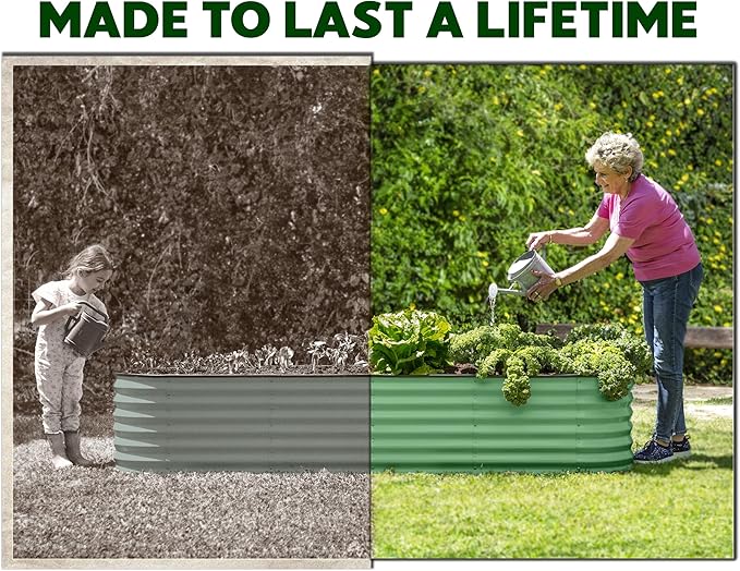 • BUILT TO LAST- The Plant & Plot garden bed is treated to withstand everyday wear and tear due to its 0.6mm thick, galvanized metal sheets and a highly durable zinc coating. Our prime materials ensure the garden bed is sturdy and maintains its shape over time. From heavy rain to extreme heat, we made sure to protect your garden bed from rust and corrosion, so it's the perfect choice if you're looking for a long-lasting solution.