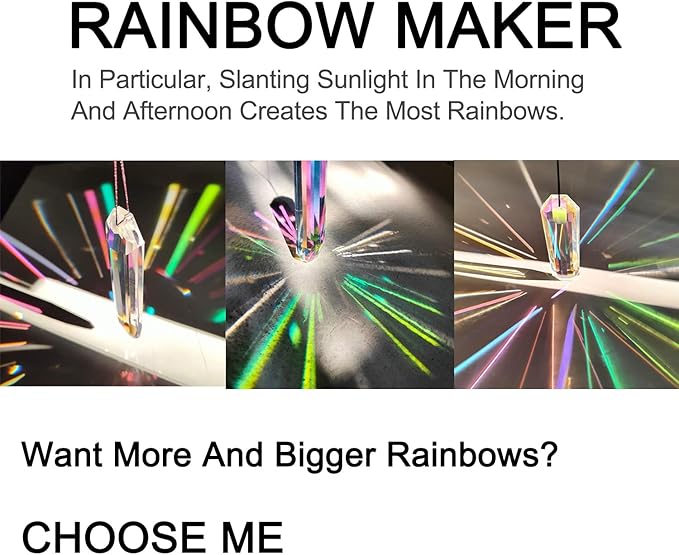 • Be sure to hang in a sunny place, only when the sunlight is slanted, the prism will produce a rainbow