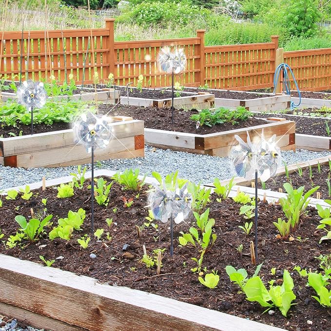 • How it works : There are millions of reflective lasers on the silver pinwheels, and it can decorate your garden