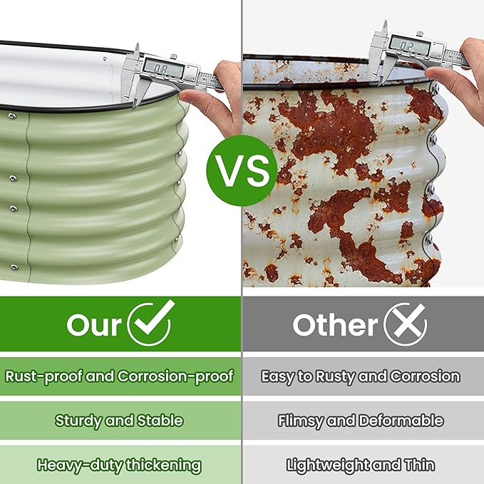 • Safety and Eco Friendly: We use USDA-approved paint that is 100% safe and eco friendly,so you can use our products with peace of mind.Plus,Our garden bed features an oval design that eliminates sharp corners and is covered with heavy-duty rubber edging to prevent injuries.