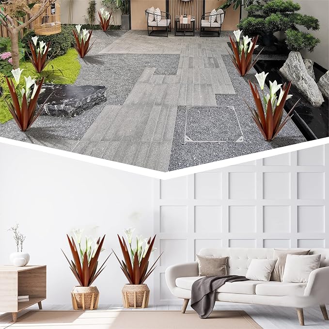 • 【 Easy to install 】 The metal agave is 16 inches tall, with nice lily flowers in the middle, and comes with a ground insert for more firm resting on the ground. Just place it anywhere you want, garden, yard, patio. It can be placed on the ground, on the patio, and used as a planter