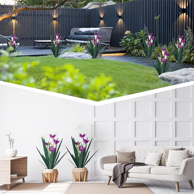 • 【 Combination of lily and metal 】 Lily agave plants are easier to care for than real plants, don't need to spend time watering or fertilizing the flowers, and don't need to worry about dying. He will always stay bright and add color to the garden
