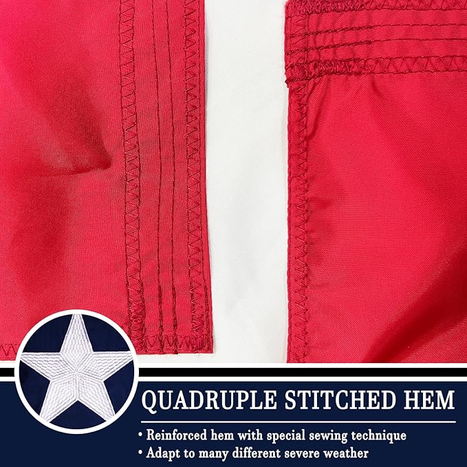 • GREAT WORKMANSHIP: The embroidery stars and sewing are made with precision craftsmanship. The superb double stitching makes the flag more durable and waterproof. This flag can withstand high winds, due to the quadruple stitched hem