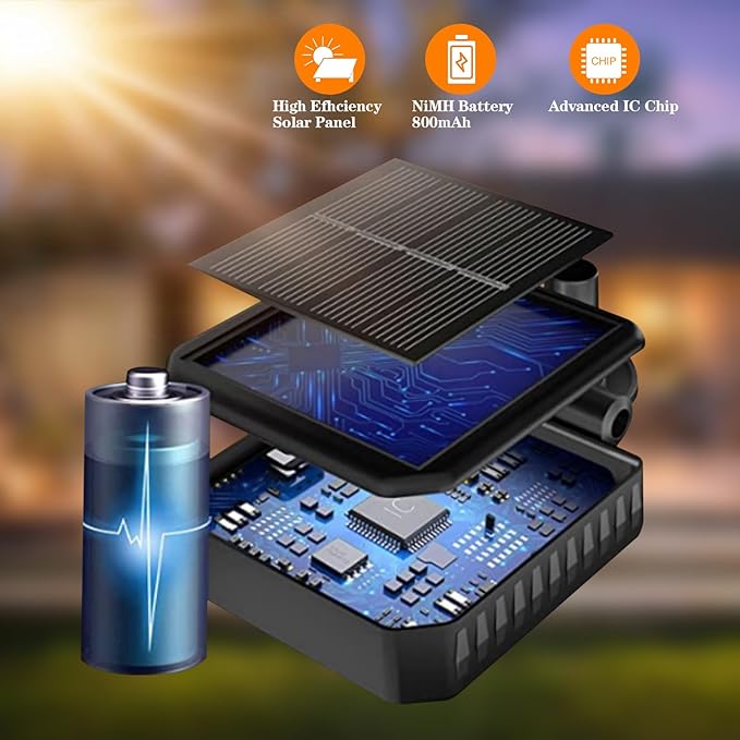 • ✅【Energy Saving and Easy to Install】: Solar firefly light is equipped with high-efficiency monocrystalline silicon solar panels, built-in 1.2V, 800mAh Ni-MH battery, ensuring your The solar outdoor lights are fast charging, it can be fully charged in 2-4 hours under direct sunlight, and can be continuously lit for 18-20 hours (continuously lit all night). No annoying wires to install, and you'll be doing all the quick installation steps in 10 seconds, lighting up your yard all night long!