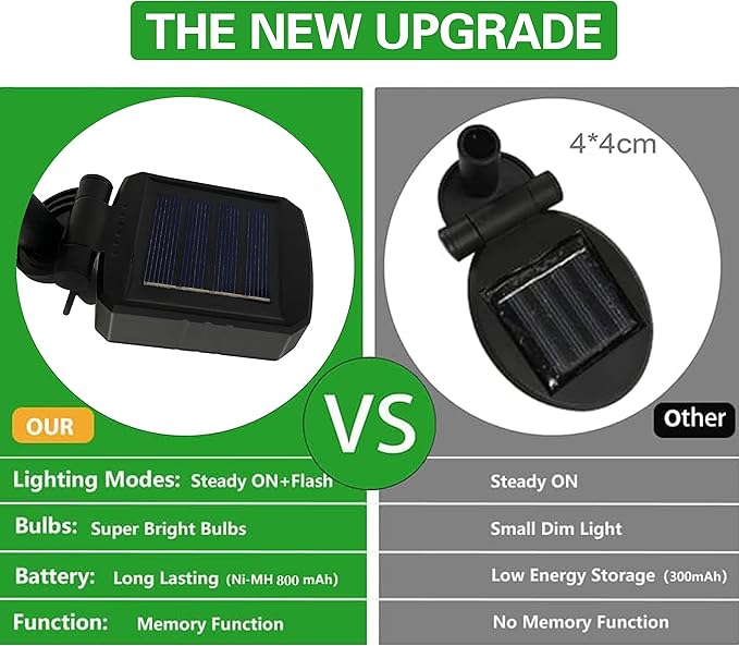• 【Energy Saving and Easy to Install】: Solar firefly light is equipped with high-efficiency monocrystalline silicon solar panels, built-in 1.2V, 800mAh Ni-MH battery, ensuring your The solar outdoor lights are fast charging, it can be fully charged in 2-4 hours under direct sunlight, and can be continuously lit for 18-20 hours (continuously lit all night). No annoying wires to install, and you'll be doing all the quick installation steps in 10 seconds, lighting up your yard all night long!