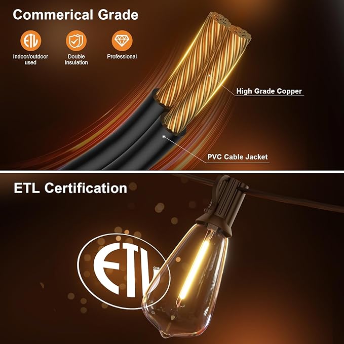 • Energy-Saving 30000 Hours: With increasing emphasis on sustainability, patio lights often use LED technology, which consumes significantly less energy compared to traditional incandescent bulbs. LED string lights are not only eco-friendly but also help reduce electricity costs.