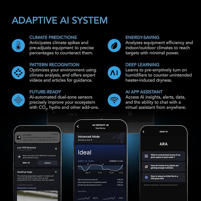• AI-driven controller predicts climate shifts using real-time and historical data, auto-adjusting connected devices for optimal grow conditions.