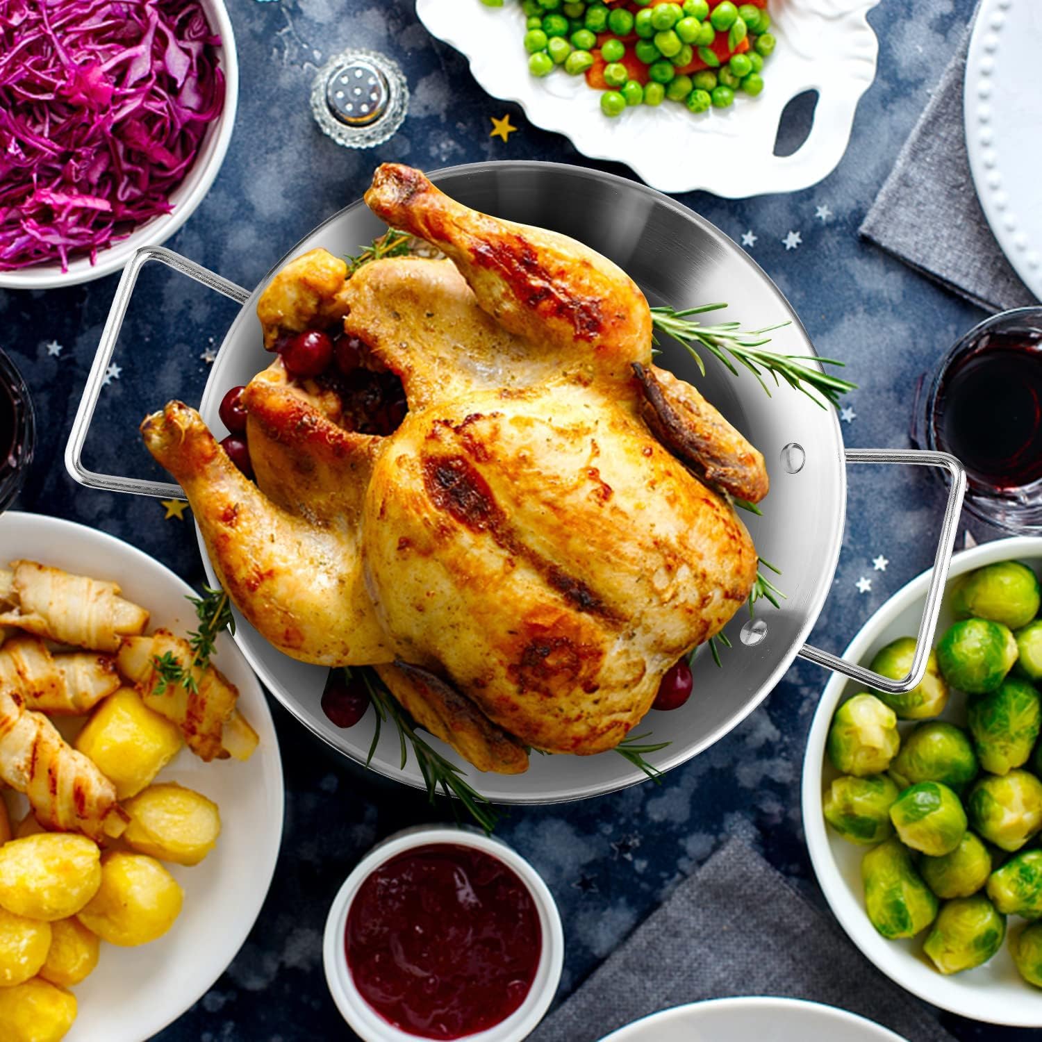 • 【3 Adjustable Spikes for Multi-Size Meats & Versatile Cooking】Equipped with 3 detachable spikes (8"/10"/12"), this vertical rotisserie holds small turkey, chicken, pork, steak, or large cuts securely. Sharp tips pierce meat effortlessly, and the heavy-duty base fits most grills, ovens, or outdoor smokers. Ideal for backyard parties, camping trips, and holiday feasts!