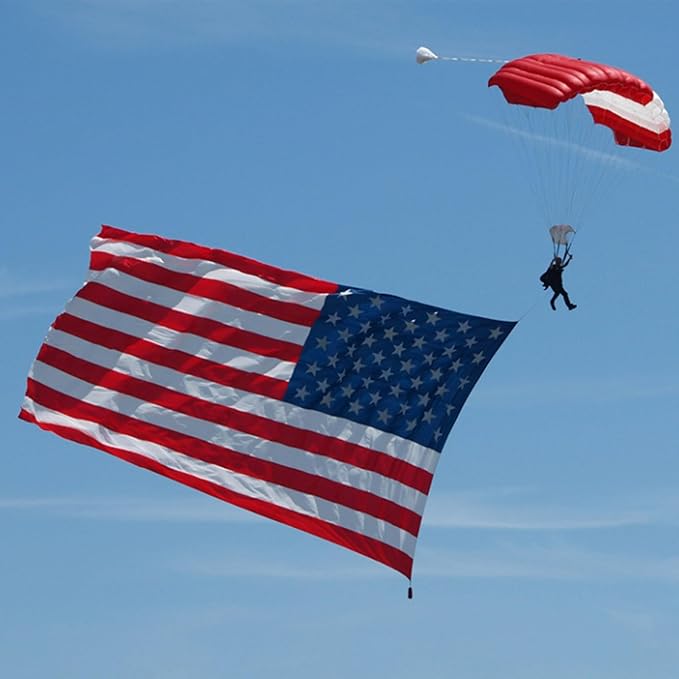 • SUPERIOR QUALITY: The flag consists of deep blue and red sheds. It expertly made of heavy duty nylon with two brass grommets. The strong grommets can keep the flag lasting flutter on the pole. Simultaneously this american flag for outside 15x25 is also an excellent choice as an indoor decoration