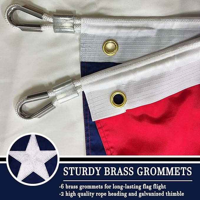 • GREAT WORKMANSHIP: The embroidery stars and sewing are made with precision craftsmanship. The superb double stitching makes the flag more durable and waterproof. This flag can withstand high winds, due to the quadruple stitched hem