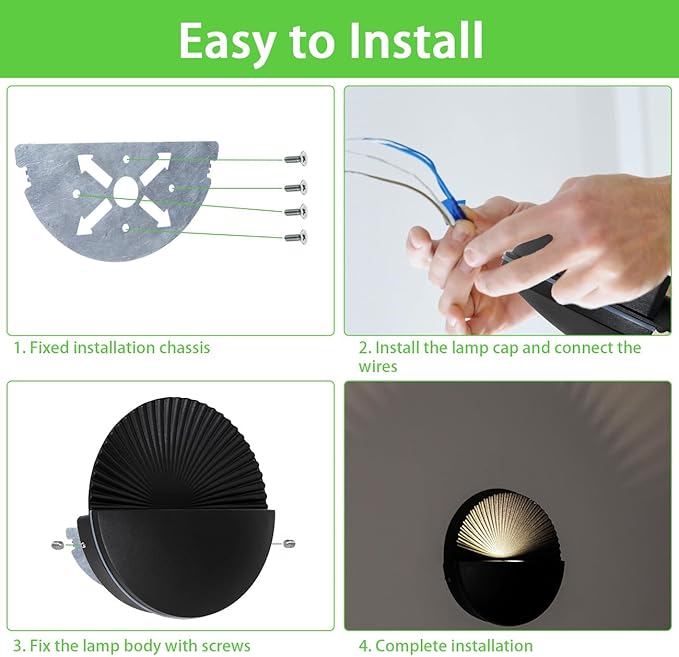 • 【Easy to Install】Designed with back mounting plate,easy to install and remove in daily. Simply install the mounting plate on wall or wood fence then snap it on, you can install these led wall lights to anywhere like yard,pool,courtyard,proch,stair,also a perfect addition to the shadowy corner in your backyard