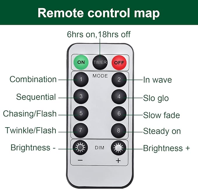 • 8 Modes to Adjust: enjoy the versatility of our Christmas fairy lights' 8 modes, including combination, in waves, sequential, slo glo, chasing, slow fade, twinkle, and steady on; Illuminate the atmosphere romantically by using these wire lights to decorate your parties, weddings, Christmas, Halloween, Thanksgiving, and other events