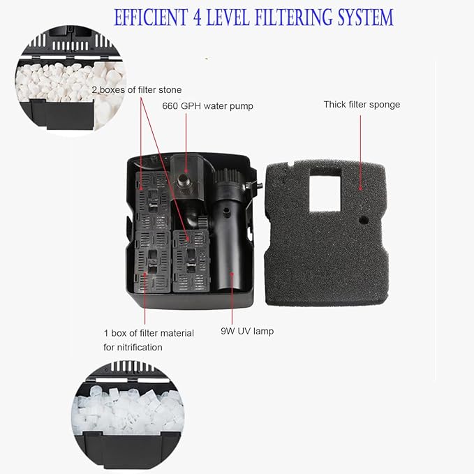 • PREMIUM FILTER MATERIALS - Benefit from the double filter area per unit volume provided by the filter sponge and bio-balls. This not only improves water clarity in your water garden but also reduces maintenance efforts.