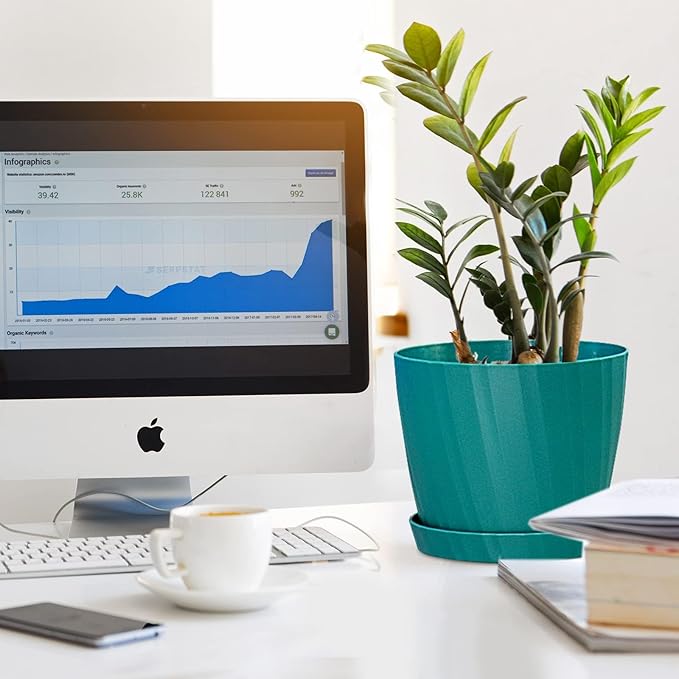 • MODERN MINIMALIST DESIGN - White matte finishing surface plant pot with strip pattern and round shape design bringing out a modern minimalistic styled and elegant. And bottom surface has feet like lines to prevent from sliding. This plastic planter will bring a modern and stylish visual. Great for all house plants.