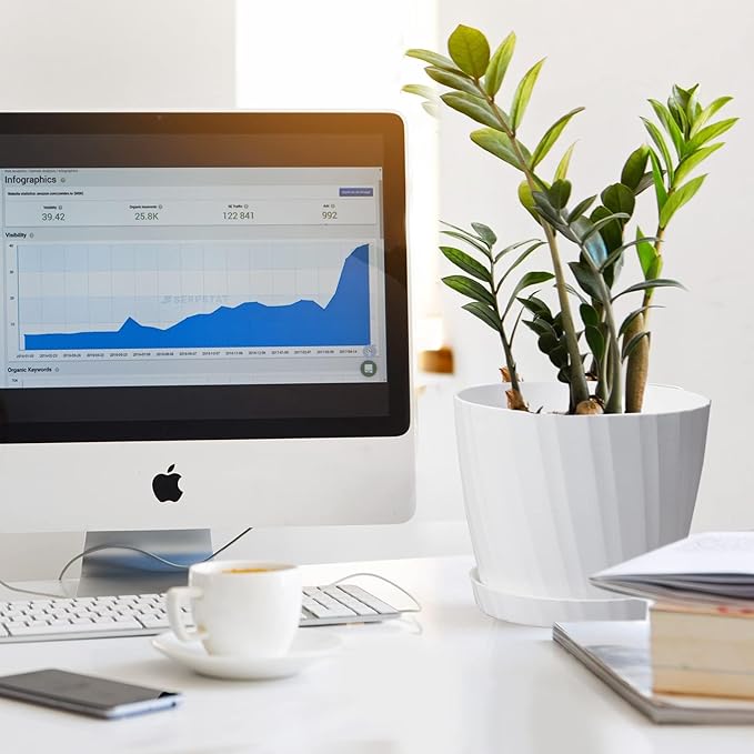 • MODERN MINIMALIST DESIGN - White matte finishing surface plant pot with strip pattern and round shape design bringing out a modern minimalistic styled and elegant. And bottom surface has feet like lines to prevent from sliding. This plastic planter will bring a modern and stylish visual. Great for all house plants.