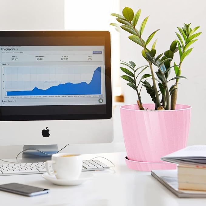• MODERN MINIMALIST DESIGN - White matte finishing surface plant pot with strip pattern and round shape design bringing out a modern minimalistic styled and elegant. And bottom surface has feet like lines to prevent from sliding. This plastic planter will bring a modern and stylish visual. Great for all house plants.