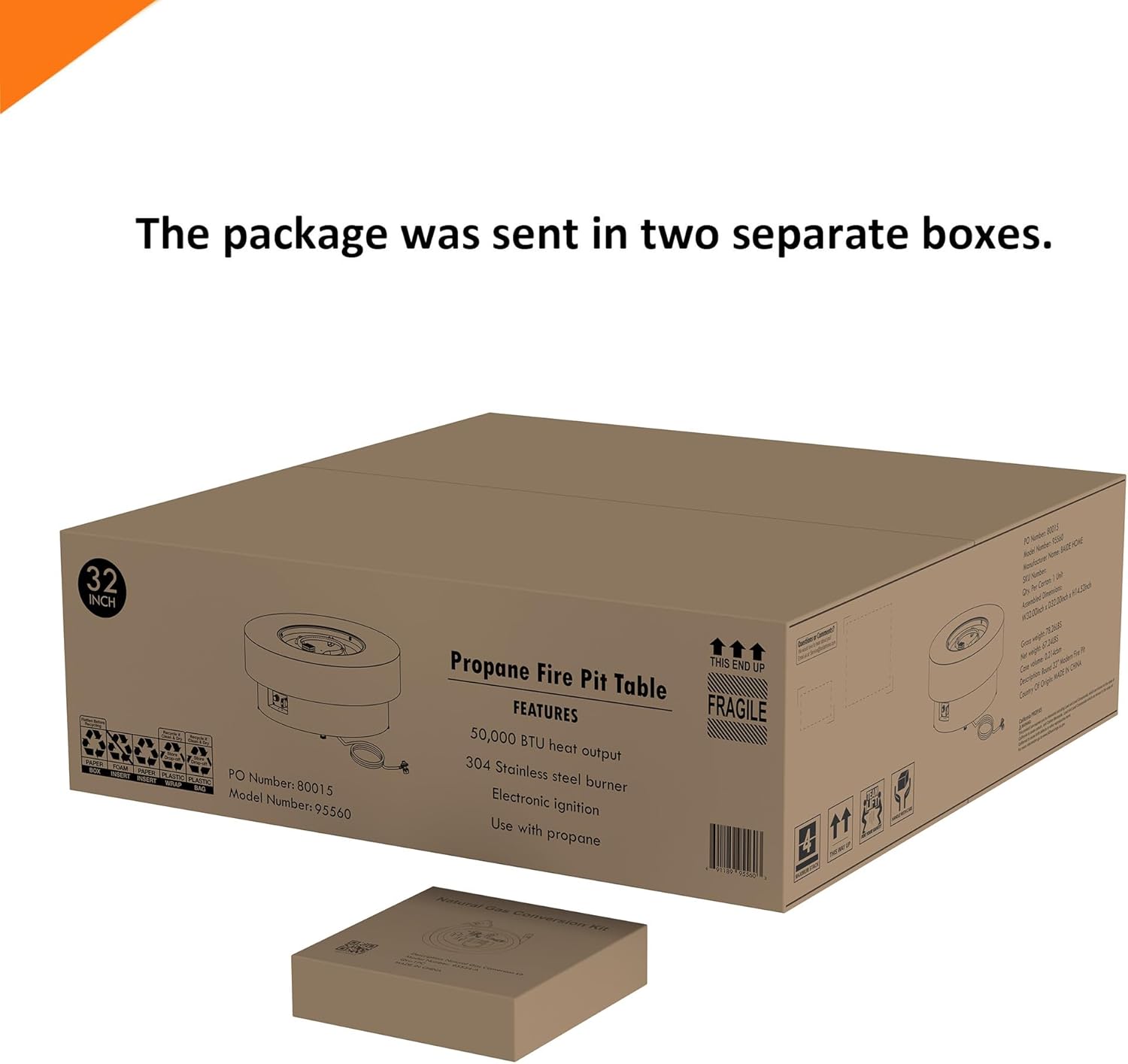 • Natural Gas Conversion Kit - Includes a natural gas converstion kit, which will be shipped separately. Converts propane fire pit tables to natural gas. We shipped the package in two separate boxes, It is possible that one package will arrive before the other.