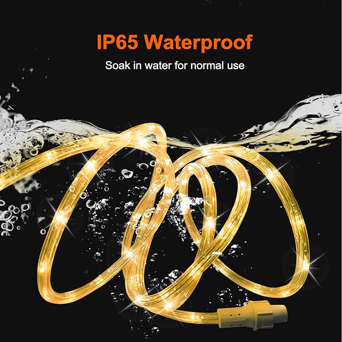 • 【Waterproof Thick Rope Lights】 More Durable - IP68 waterproof clear tubing protects the copper wire string lights. Perfect for outdoor and indoor decorations.