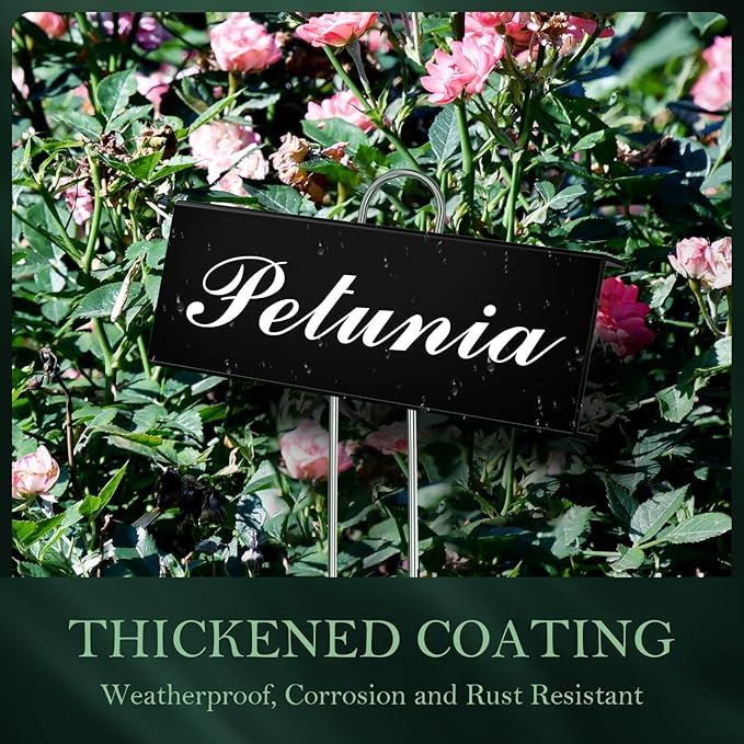 • Attractive Design: Not only are these plant labels practical, but they also add a touch of elegance to your garden. The sleek metal design complements any outdoor space, giving it a polished and organized look. Use these markers to create a well-organized garden or to add a decorative touch to your potted plants.