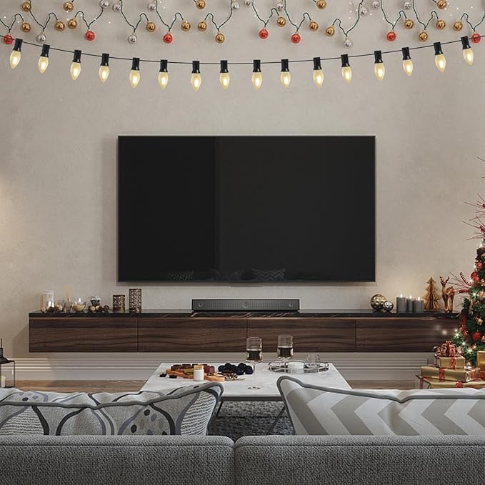 • Easy to install -Always mount the string first before screwing in the light bulbs. The outdoor string lights comes with a small hook, easy to install. This warm white Christmas light is perfect for the upcoming Christmas holiday decorations.
