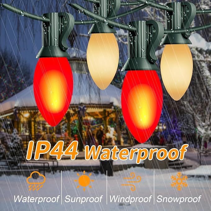 • Versatile Decor Options:C9 ceramic christmas lights outdoor are perfect for both indoor and outdoor use. Whether adorning your Christmas tree, patio, balcony, garden, lawn, gate, yard, or roofline, these lights will add a touch of elegance to any setting.