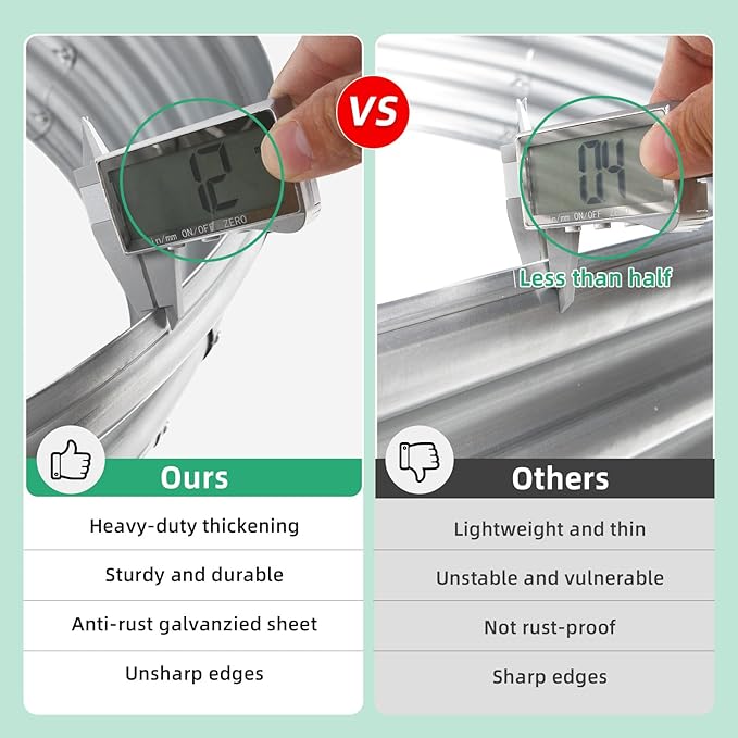 • 【1.2mm Heavy-duty Thickening Galvanized Sheet】: Gartist outdoor raised garden bed is made of Q195 double-side galvanized steel sheet. Compared with ordinary galvanized sheet, the 1.2mm thickened galvanized sheet is more durable and sturdy, not easy to deform, and has improved anti-corrosion and rust resistance. It is more resistant to high temperatures and freezes, making it very suitable for outdoor use.