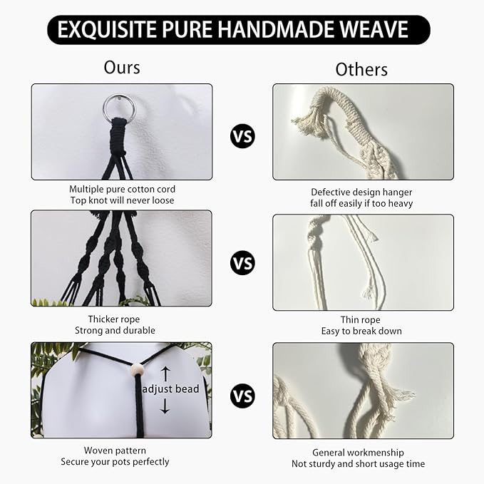 • SERVICE & HIGH QUALITY - You can get black plant hangers and hooks. If you have any questions before or after the purchase, feel free to contact us. Please kindly note that the length will shorten depending on the size of the pot, enjoy your life with this product now