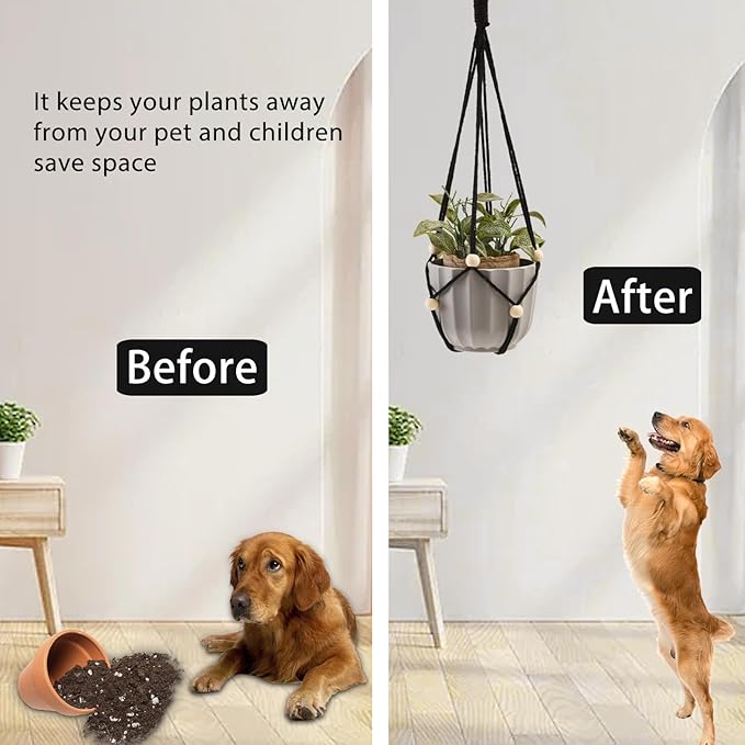 • ADJUSTABLE WOOD BEADS - You can easily adjust it by moving the wooden beads up and down to perfectly fix the pots. You can hang macrame plant hanger in your living room, hall, office ceiling and anywhere you like. Kids and pets can no longer mess up your potted plants