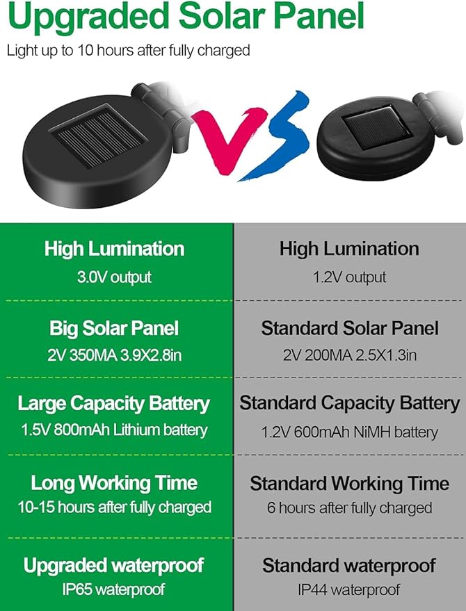 • 【𝟏𝟎𝟎% 𝐒𝐨𝐥𝐚𝐫 𝐏𝐨𝐰𝐞𝐫𝐞𝐝 & 𝐀𝐮𝐭𝐨 𝐎𝐧/𝐎𝐟𝐟】Equipped with fully upgraded 1.5V/800mAh solar panels, convert sunlight into electricity faster and reach up to 25% more efficient than ordinary solar lights, work up to 10 hours. The solar cross lights will be auto-on/off & charged by sensing the surrounding environment. ⚠️(Note: Please turn on the switch "ON" for charging).
