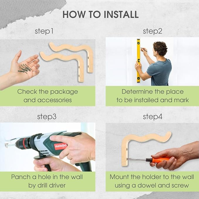• EASY INSTALLATION: With the included hardware and easy straightforward instructions, mounting our plant hanging bracket for wall is a breeze. Our hook for plants comes come with ‎2 hooks, 4 screws, 4 dowels and 4 self-adhesive screw for installation.