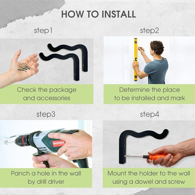 • EASY INSTALLATION: With the included hardware and easy straightforward instructions, mounting our plant hanging bracket for wall is a breeze. Our hook for plants comes come with 2 hooks, 4 screws, 4 dowels and 4 self-adhesive screw covers for installation.