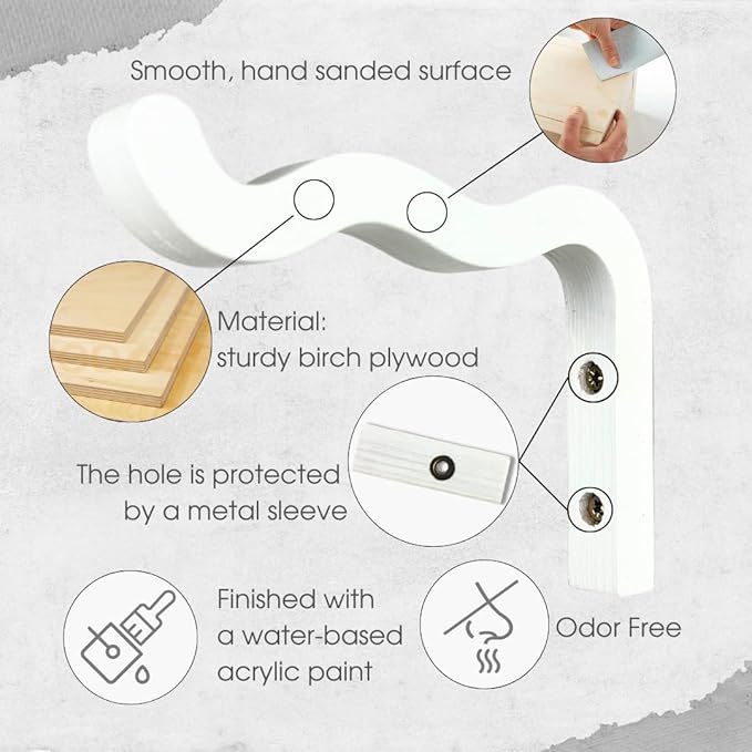 2-Piece Set of Wavy Wooden Wall Planters for Indoor Plants 6 Inch - Natural Plant Hook for Wall Plant, Wind Chimes, Flower Brackets, Patio Garden Decorations - Bracket Plant Hanger (White)